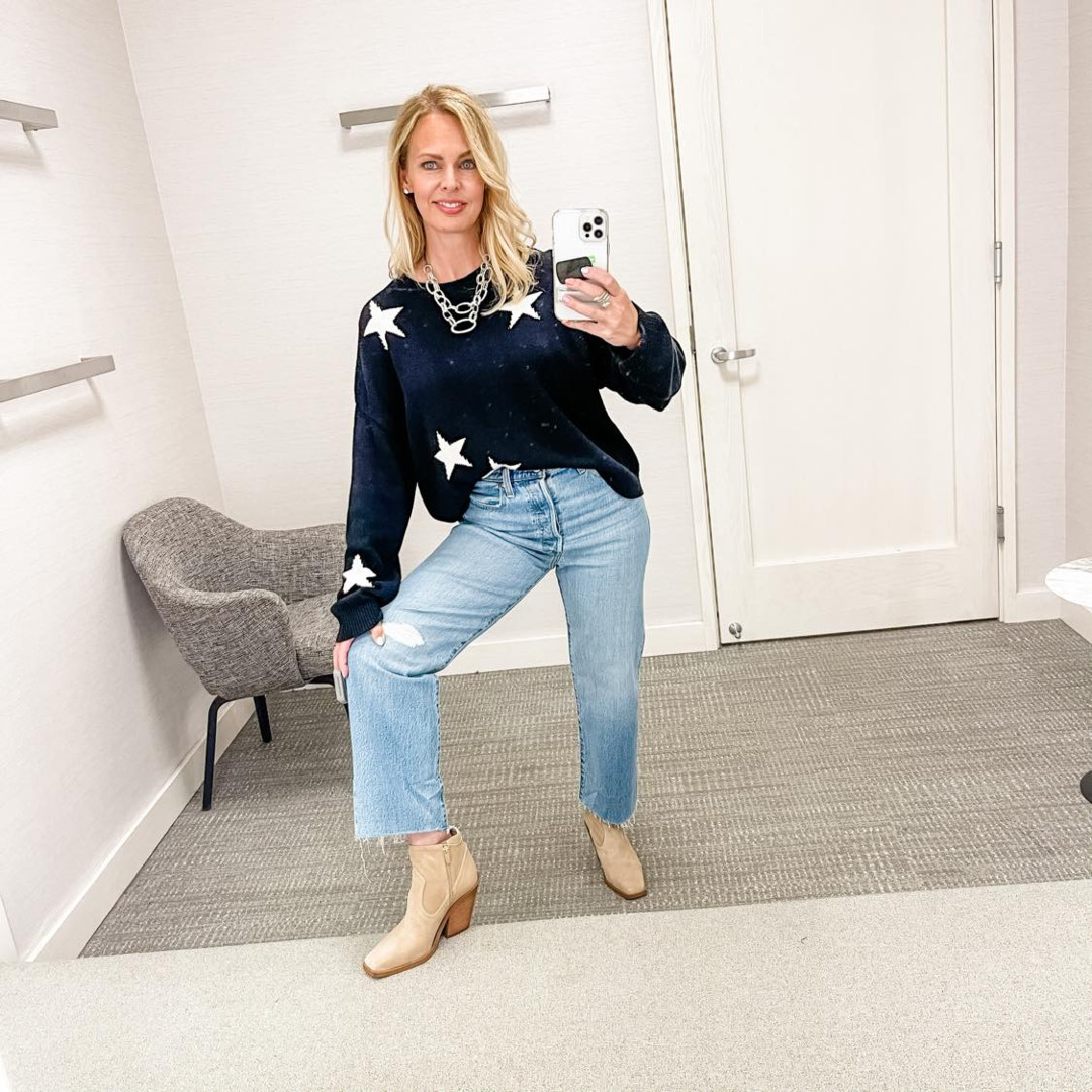Pieces modeled in this postSweater | Jeans | Bootie | Necklace